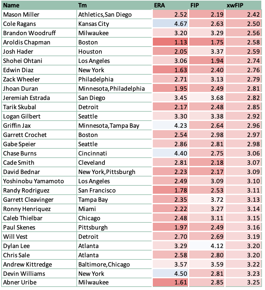 Table 1: 2025 xwFIP full season rankings among all pitchers with 40+ innings pitched